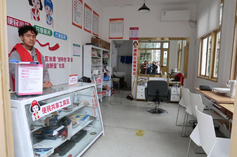 在这里,居民既可以享受低于市场价的理发服务,也可以免费获取便民服务信息、借用便民共享工具,还可以协助老年人开展各种代办服务。居民不出社区就能解决生活中的微小需求,社区将服务延伸到了“最后100米”,居民互帮互助更温暖了人心。